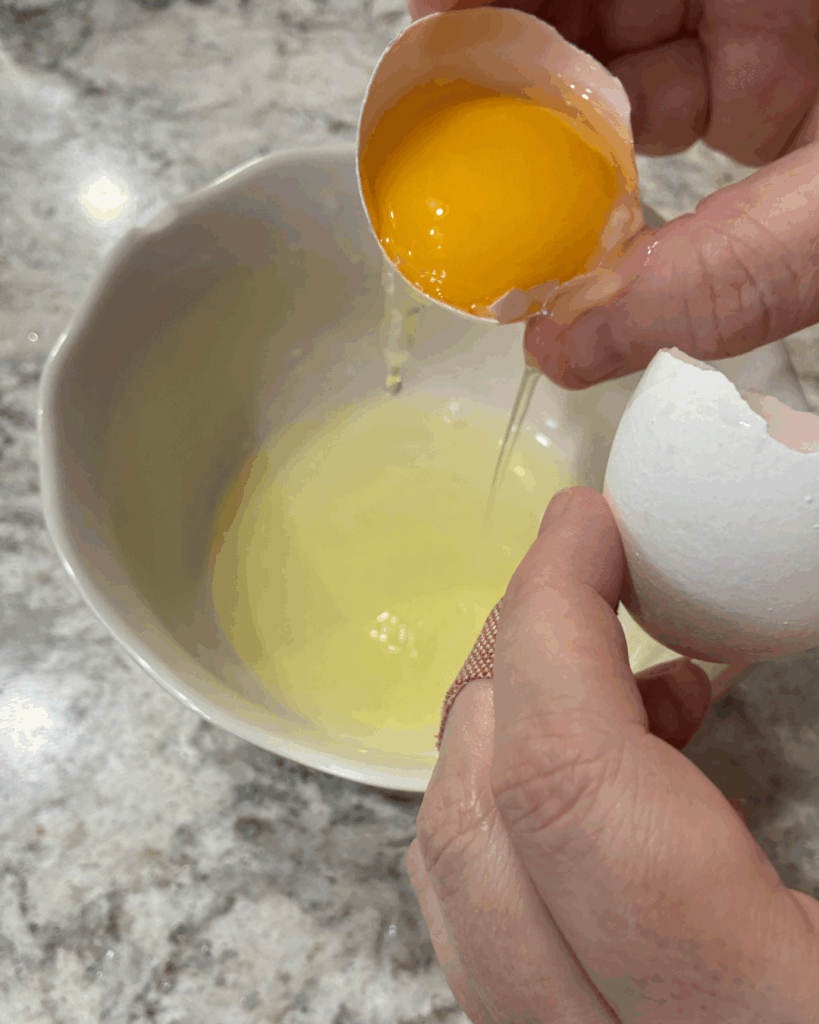 You can do something similar to the previous method, but instead just use your hands. Carefully crack the egg into one of your hands and let the egg white run through your fingers and keep the yolk cradled in your hand. I absolutely hate the way egg feels on my hands, so this is not the method I prefer, but it does work. If you’re less icky about eggs than I am, this method might be easier for you.